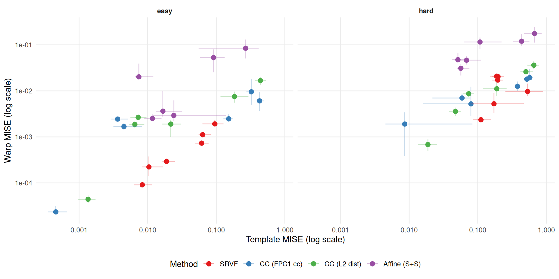 labs(x = "Template MISE (log scale)", y = "Warp MISE (log scale)") +